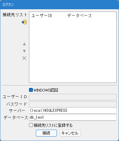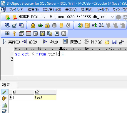 試しにSQL Server Expressに接続し、SQLを実行してみる。