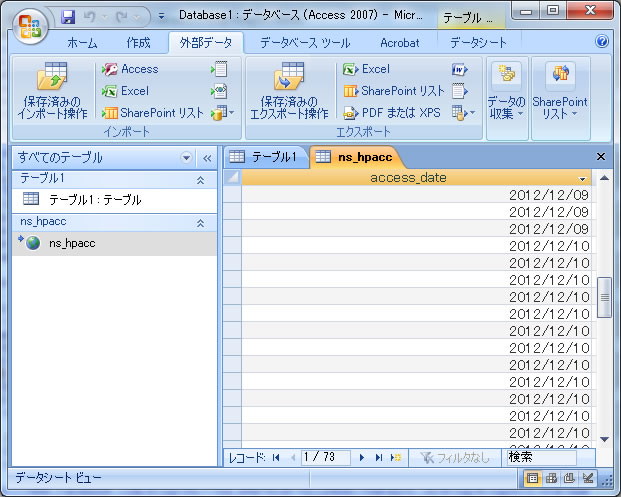 外部データ→その他→ODBCデータソース、リンクを作成した。