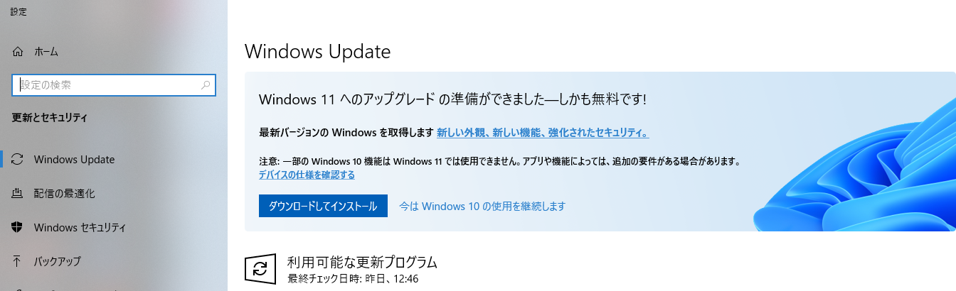 Windows10のアプリがWindows11で動作することを確認してからアップグレードする予定だったが、しびれを切らしてアップグレードに臨んだ。
