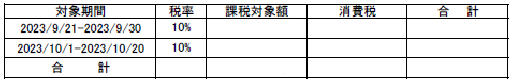 請求書は10/20締で、当方10月から課税事業者になるので、対象期間を二つに分けた。次回は一つになる。