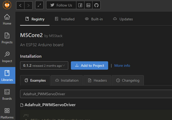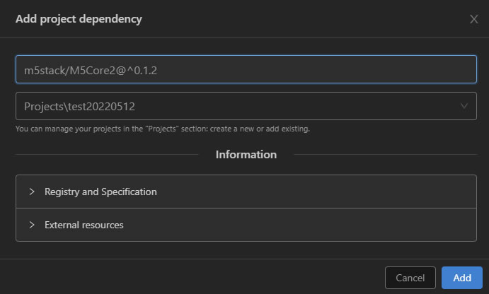 4.M5Core2をインストールし今回のプロジェクトに追加